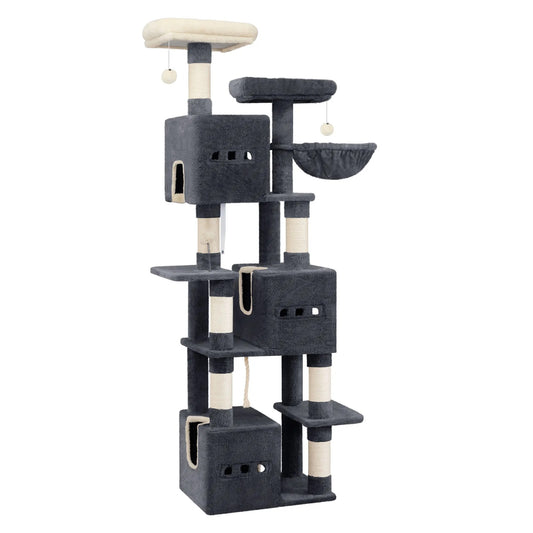 Arbre à chat multi-niveaux 178 cm avec plateformes, grottes et poteaux à griffer
