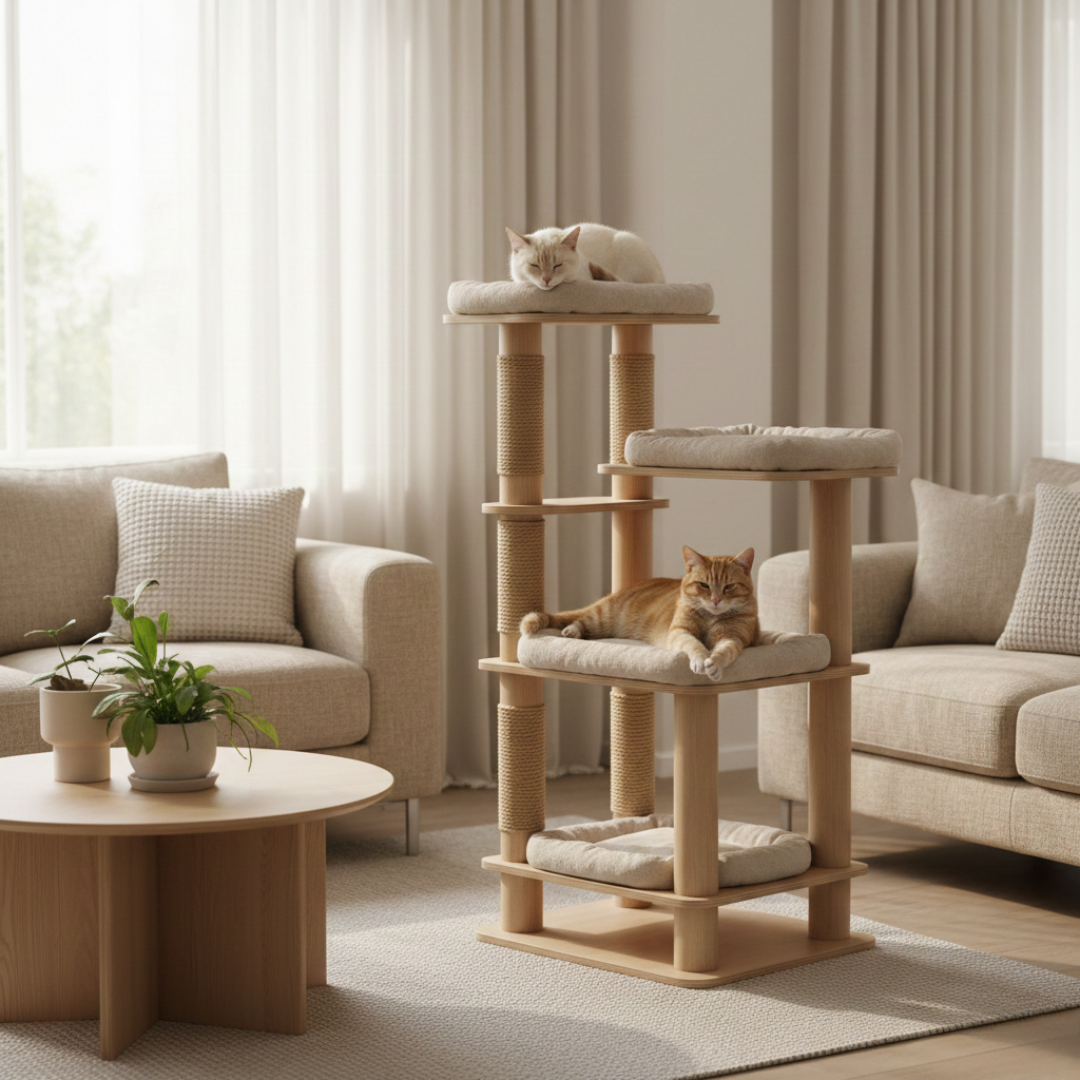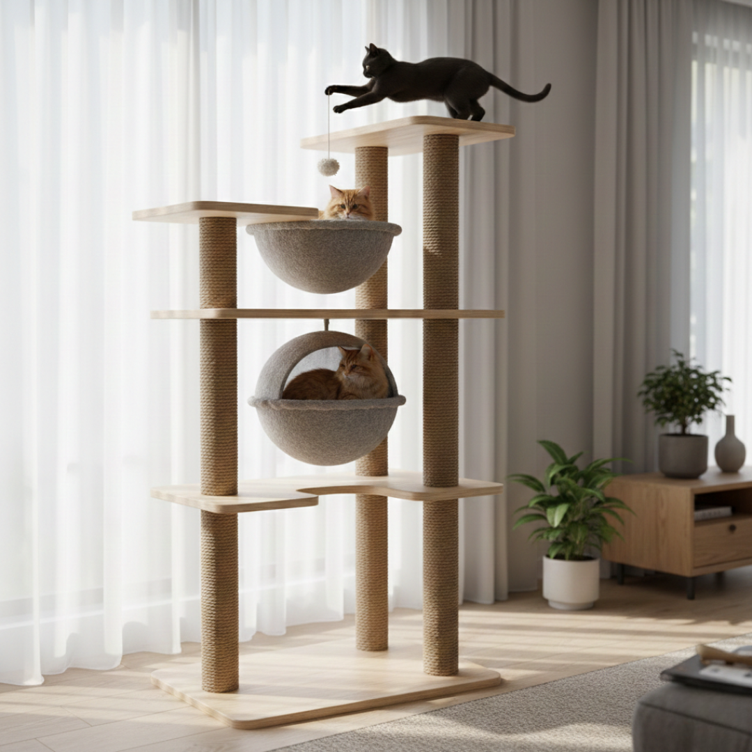Nos arbres à chat sont conçus à partir de matériaux sélectionnés tels que le bois, le MDF, le sisal et des revêtements textiles, selon les modèles. Chaque arbre à chat est destiné à un usage intérieur et est proposé en plusieurs formats, hauteurs et configurations afin de s’adapter aux différents espaces de la maison.